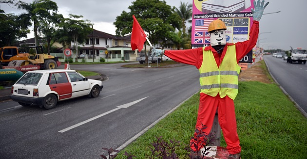 砂拉越民生 假的“指挥员”让道路使用者吓破胆? 2016年1月20日 假的“指挥员”。 假的“指挥员”让道路使用者吓破胆?Advertisement 陈姓读者日前向《诗华民生》指出,在BDC路段有建筑工程在进行着,但却发现发展商使用假的“指挥员”在路中间指挥交通。 他说,有关假的“指挥员”也穿起了指挥员的制服,在路中间,升起了手,一只手握住旗帜,另一只手则向路人打招呼。 他称,他夜晚经过该路段时,曾经几次被吓破了胆。 他也说,许多好奇的民众也会放慢车速,看看有关假的“指挥员”,造成道路阻塞。
