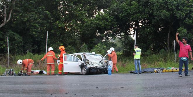 目前已经查证不幸身亡的司机为22岁的黄庆昌(译音)、来自诗巫乌也路,至于另外三名死者的身份仍有待证实。