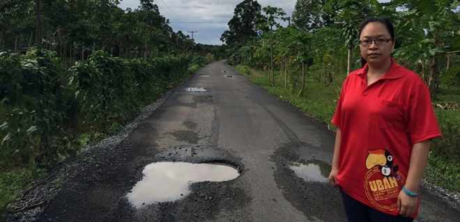 她说,坡民向当局投诉时,总是以经费不足为由,来拖延维修工作。然而在维修后,没多久却出现坑洞,根据她的观察,发着沥青的厚度与工程规格有极大的相差,因此出现上述现象。