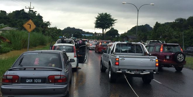 砂拉越南砂 古晉西連交通中斷! 2016年2月8日 晉連幹路16哩處,發生罕見水災!道路被大水淹沒中斷,車子紛紛折返,引起大塞車!Advertisement 大年初一大雨來襲,導致有關路段已排水不及,而發生水災。據了解,水位深及成年人腰部,截至下午5時,交通依然中斷。