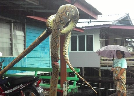 砂拉越中砂 约2公斤重 蟒蛇又闯民宅 2015年1月25日 被当地居民捕抓到的蟒蛇。 (本报沐胶24日讯)昨日傍晚在甘榜特利安乌鲁地区一住户遭一条2公斤重的蟒蛇闯入。Advertisement 据屋主西尔维斯特乌今表示,当时他与家人在享用早餐,突然有一条蛇从地板的洞口出现,他急忙带着家人逃到屋外,并要求邻居帮忙捕抓这条不请自来的“访客”。 结果,该条蟒蛇终于被捕抓。 屋主表示,目前处于雨季期间,爬行类动物会从土壤爬出到安全地方,所以民众要小心提防这些爬行类的到访。