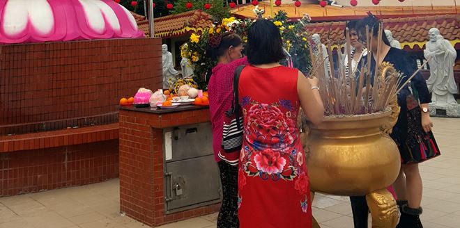 砂拉越南砂 膜拜祈福 神庙善信络绎不绝 2016年2月10日 春节里,善信涌向神庙烧香膜拜,祈愿丙申猴年里获神明庇佑。 (本报古晋9日讯)春节期间到神庙膜拜与祈福的人络绎不绝,香炉里缕缕轻烟冒起,莲花烛朵朵亮开,祈愿着新年初始能合家安康,事事称心。Advertisement 大清早,本地多家神庙已集聚有大批善信,备了水果及鲜花等供奉神祗。春节到庙里祈福还愿,是许多华裔家庭少不了的活动之一,老少齐来,尤其从外归来的游子们,更处处可见。 除了烧香膜拜、添香油钱,有的善信也点亮莲花烛,祈愿事顺财足、身体安康、贵人得力等,愿丙申猴年里能获神明庇佑。