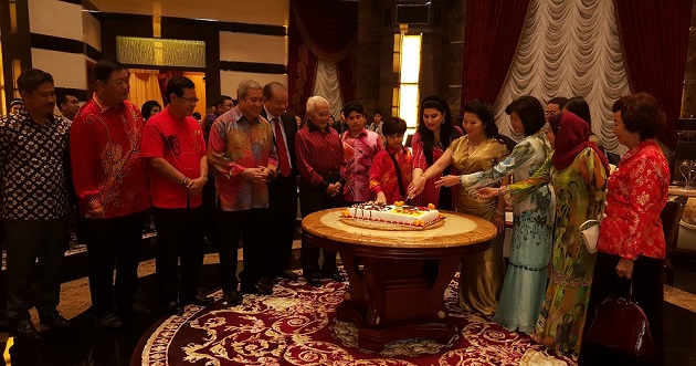 砂拉越北砂 州元首伉俪贺年 2016年2月10日 元首后杜潘拿督巴丁宜诺基雅于林昌和家中进行切蛋糕仪式。 配合华人农历新年的到来,砂州元首敦丕显斯里泰益玛目及元首后杜潘拿督巴丁宜诺基雅,昨日特莅临美里,并向美里华社及高官显要贺年,其中包括向升阳集团总裁丹斯里林昌和、美里市长赖耀松、联山集团总栽拿督许赞丕、进木行集团总裁丹斯里刘贤威等贺年。Advertisement