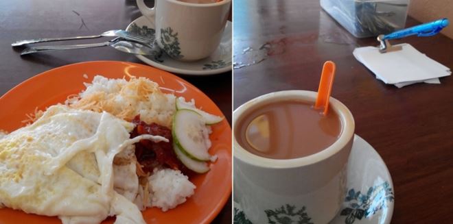 记者佯装顾客上门,点了一碟椰浆饭及叫了一杯奶茶,发现食物都比一般的便宜,尤其奶茶一杯才卖80仙,椰浆饭一碟只卖2令吉。