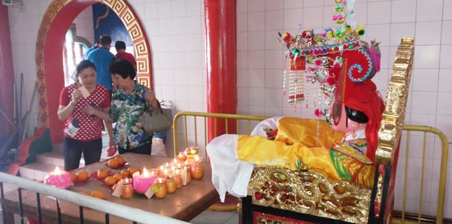 青山岩今年增加了妈祖圣轿,供信徒膜拜。