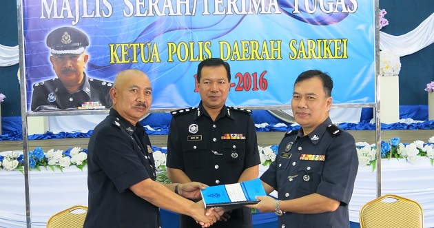 泗里街警区主任柏尼曼警监是于今日上午9时,在泗县总部多用途礼堂举行的职权移交仪式上,由砂拉越警察总部防范罪案及社区安全部(JPJKK)行动组副主任旺山苏丁助理警察总监见证下,签署职权移交文件,并且正式移交职权予副警区主任多米尼副警监。