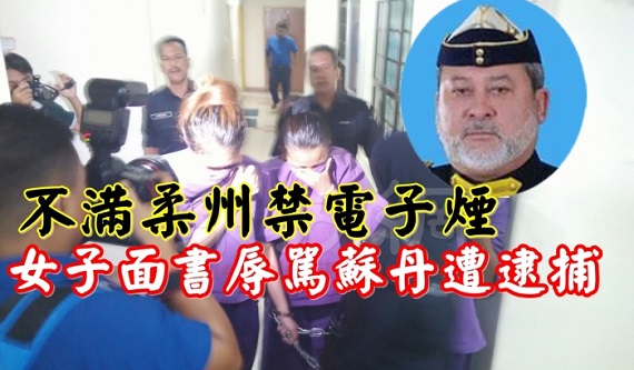 西马 不满柔州禁电子烟 女子面书辱骂柔苏丹遭逮捕 2016年2月22日 一名26岁马来酒廊女公关,涉嫌在本月15日於社交网络中针对柔佛禁止电子烟一事,对柔佛苏丹出言不逊,本月21日晚上被新山北警区逮捕,今日被押上新山地庭延长扣留。Advertisement 26岁女公关(上图)在面子书留言区,疑不满电子烟贩售被禁,涉嫌公然辱骂柔州苏丹,週一凌晨遭警方逮捕。