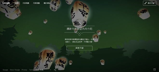 「Google『猴』你祝福」从即日起到3月8日,开放让网民线上施放虚擬天灯,3月8日后则提供瀏览功能,开放观赏新春期间创作的天灯作品。