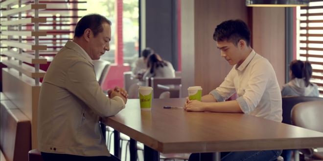 广告一开始,一对父子在麦当劳用餐,儿子將杯子写著「我喜欢男生」的咖啡,递给父亲,坦承自己的性向。父亲看到后,脸色难看並嘆一口气后,离开座位。