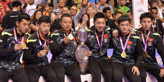 (莎阿南7日讯)中国男队周日晚在2016年《完美》世乒团体赛决赛中,以3比0击败日本,连续第八次、也是史上第20次捧走斯韦思林杯。