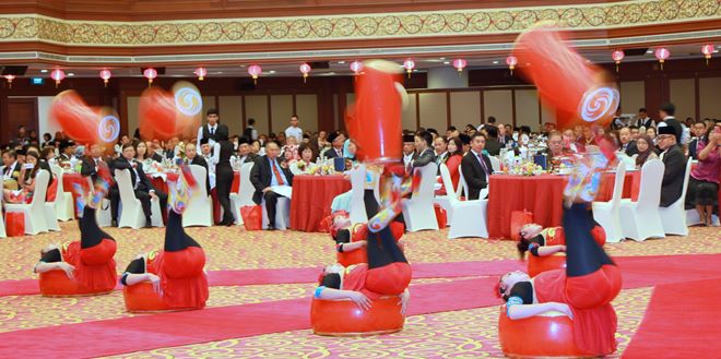 “十年前由4位华人丕显带领下,开始了这样一个集合全国所有华团与华社的大团拜活动,同时也获得我国元首苏丹陛下的隆恩,率领皇室成员参加这个在汶莱华社中最盛大的庆祝活动,一团眼就超过10个年头。”