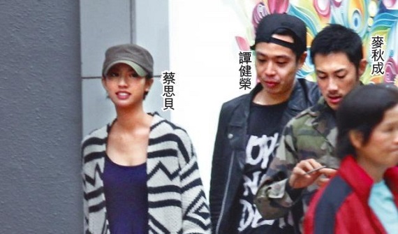 日前中午12时许,蔡思贝一身青春打扮,陪男友麦秋成到筲箕湾取摩哆,媒体先於东区走廊发现麦秋成,当时他正驾著蔡思贝掛上P牌的深蓝色甲虫车,载著蔡思贝沿东区走廊驶往筲箕湾,並到筲箕湾南安街一间卖摩哆的专门店门前停下,原来两人约了DJ朱薰的老公谭健荣。两位男士会合后表现兴奋,第一时间走入车行看车,独自留下蔡思贝在店內荡来荡去。