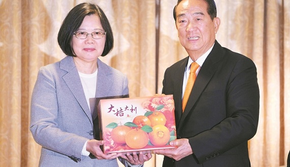 不过会末,宋楚瑜赠送蔡英文橘子伴手礼时似意有所指地表示,「这个里面一定有橘的」,「大吉大利」。