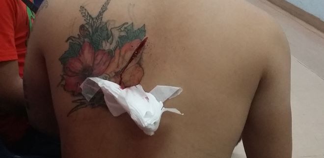 伤者在刀客逃离后,由友人驱车送到古晋砂中央医院急诊部接受治疗。