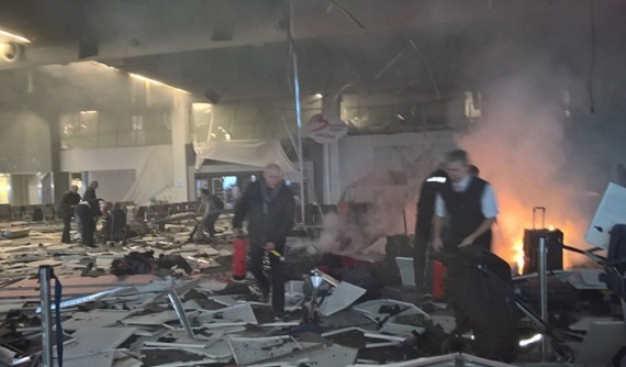 恐怖分子於机场引爆炸弹,造成大量死伤,有在离境大楼的旅客拍下当时的恐怖情况,大量乘客伏於地上、躲在桌底下保命。