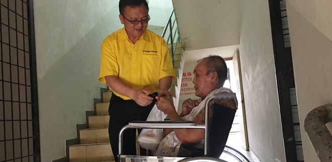 砂拉越南砂 行动不便 三餐不继 中风老人生活陷困 2016年3月23日 罗克强打包饭盒探望中风,居住在石角新市镇的独居老年人蔡振华,以了解对方的苦情。 居住在石角新市镇的独居老年人蔡振华因为中风,造成生活起居和行动不便,虽然每个月有领取砂福利局提供的300令吉援助金。Advertisement 但200多令吉却用于摊还租金后就所剩无几,三餐成了大问题。 作为人联党石角区与峇都吉当区潜能候选人之一的巴达旺市议会主席罗克强日前得知对方的困境后,特地打包饭盒探望他,以了解对方的苦情。他也鼓励社会众施出爱心,伸出援手,帮助蔡氏脱离困境,捐赠蔡氏日常必需品和食品,让其度过难关。