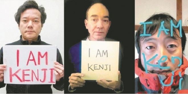 (东京28日讯)日本自由记者后藤健二遭ISIL好战分子挟持引发全日本关切,期盼后藤安然归来的民眾如今在面子书放上「我是健二」的標语。