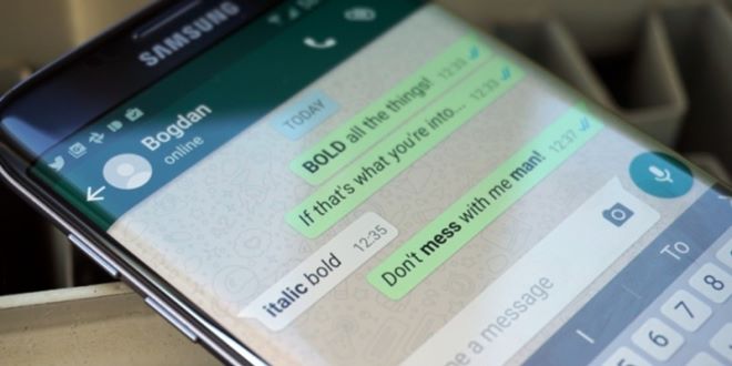 科技3C资讯 WhatsApp推新功能 可输入粗斜体 2016年3月30日 即时通讯应用程式WhatsApp推出新功能,用户可以在文字中加插简单的符號,改变字体,包括粗体、斜体等。新版本的WhatsApp適用於iOS及Android。Advertisement 另,用户若想让文字变成粗体,可以在文字前后输入星號,即「*粗体*」;若想令文字变斜体,则在文字前后输入底线,即「_斜体_」;若想在將文字变成刪字,即可在文字前后输入波浪线,即「~刪字~」。 *符號与文字之间不能有空格,而且要用英键盘输入符號才可。