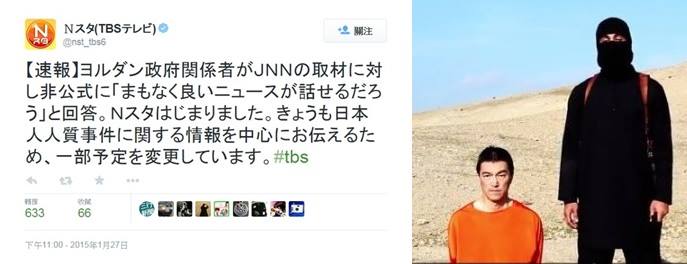 伊拉克与黎凡特伊斯兰国(ISIL)昨晚发布消息,称要在24小时内杀害日本人质后藤健二。日本TBS电视台Twitter今天引述约旦政府官员非正式消息称,“即将会有好消息传出”,被臆测为可能释放ISIL女囚犯,换取后藤健二生命。