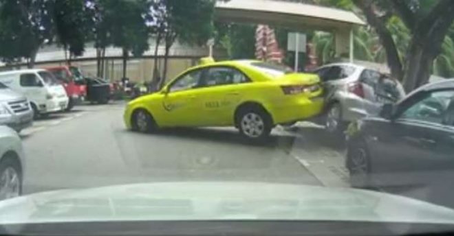 新加坡社交媒体週一(4日)开始疯传一段视频,有关疑似新加坡德士,在停车场忽然急速倒退撞车后逃走,被撞的银色车左门全毁。
