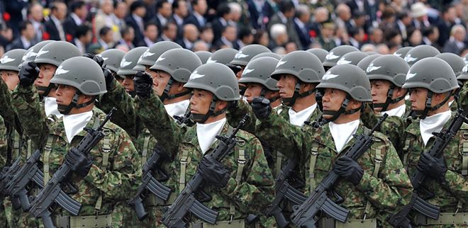 2014年7月,日本內阁决议定出的「武力行使三条件」中规定,「威胁到日本国家存亡,对日本国民的生命、自由及追求幸福的权利构成明確危险」时,日本將行使武力。