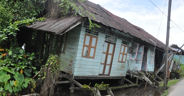 诗巫厦门路中段一间废弃木屋,门前木柱已经倾斜,屋身也倒塌大半,附近住户不管是开车的,还是骑摩托的,只要是经过该屋子都很担心。“不知道会不会一时运气不好,经过时,屋子就塌下来,那我们不是白白被压到?”