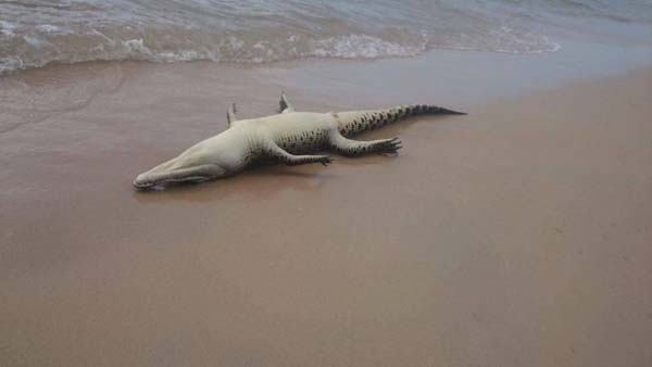 砂拉越民都魯 眼睛部位肿胀 鳄鱼卧尸基都隆海边 2016年4月15日 男童在基都隆海边发现鳄鱼尸体 (本报民都鲁14日讯)在基都隆海边发现鳄鱼尸体,民众受促提高警惕,勿靠近海边游玩。Advertisement 于今日清晨6时,在基都隆海边,一名男童发现一具长达约4尺的尖嘴鳄鱼。 当时有关鳄鱼被发现时,眼睛已经肿胀,在该处一动也不动,因此男童立即通知家人前往该处查看。 当其家人在抵达该处时,发现鳄鱼已经没有生命迹象,于是便通知有关部门将鳄鱼的尸体送走。 由于该海边已非首次出现鳄鱼踪迹,民众受促提高警惕,勿到海边游玩,以免遭鳄鱼袭击而酿意外发生。 鳄鱼被发现时眼睛已经肿胀。