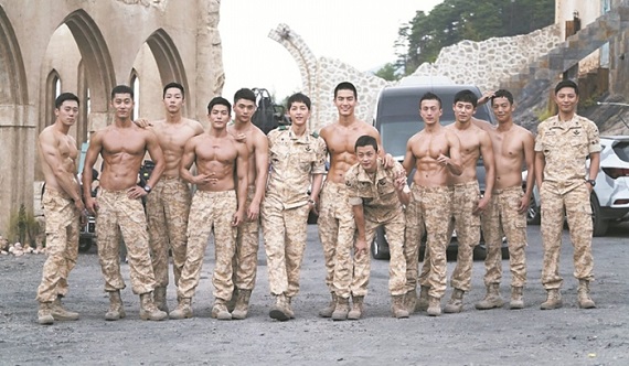 《太阳的后裔》自启播以来,宋仲基、宋慧乔的「双宋CP」以及晋久、金智媛的「救援CP」成功点燃收视烽火。不仅剧中的姜慕烟(宋慧乔)觉得半裸步操的阿尔法队是养眼的一道风景,戏外剧迷们也迫不及待地一一揭露这群阿兵哥的真身,为欧巴们高喊:「团结」。