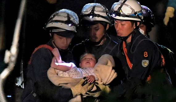 (熊本市15日讯)日本熊本县週四晚发生6.5级地震时,重灾区益城町一名只有8个月大的女婴於睡梦中被倒塌的房屋压著,在余震不断的情况下,救援人员花了6个小时將女婴救出,她奇跡地毫髮无损。