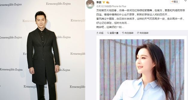 李晨今凌晨在微博发文,除了讚扬春天到来,更希望「春风拂过十里路,白日渐长夜微凉,这样的天气可否再多一些,色彩再浓一点,好让记忆停驻,任时光匆流…」,最后並向粉丝道「晚安吧,这美好的一刻」,只是晒出的照片却是女友范冰冰的美照。