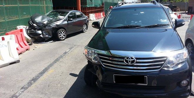这起车祸是今早10时左右,在下南南正在建造中的高架公路(交通灯处)发生,当时两车都是从斗亚兰往亿达方向行驶。