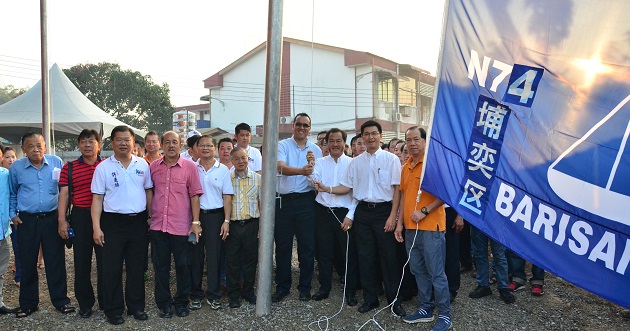 埔奕区国阵候选人拿督许庆璋、联民党埔奕区支部主席蔡金忠、联民党史纳汀支部主席陈忻律师、联民党卑尔骚支部代主席沈弼顺、行动室主任林启钦、郑春伟、江山河等人皆出席今早7时的升旗礼,场面浩大,估计近百人出席这项升旗仪式。