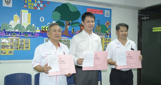 随行的许如发不忘派发“拒绝GST”的火箭宣传单给市政局的办工人员。