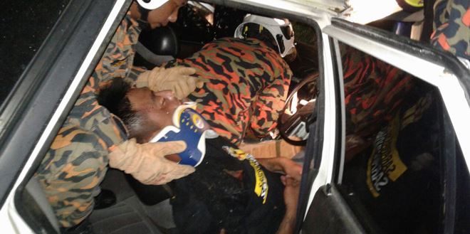 (本报古晋18日讯)国产金丝雀轿车与丰田老车发生猛撞,导致双方司机受困在车厢内,惊动消防单位赶到现场进行拯救,将2名负伤华裔司机送入院接受治疗。