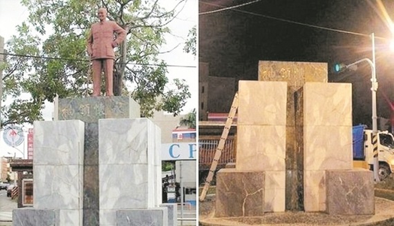 报导指,当天清晨,区公所突然派出大型机械及人手,火速拆掉基座,移走铜像,剩下一片空地。