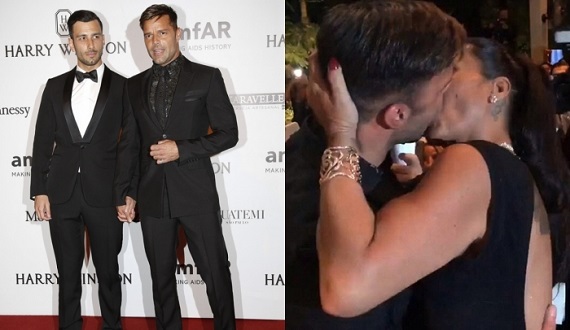 (圣保罗20日讯)44岁「拉丁天王」歷奇马汀(Ricky Martin)上周首度牵著新男友加万约瑟夫(Jwan Yosef)公开亮相认爱,小俩口出席巴西圣保罗一场慈善晚宴,出柜多年的他为了爱滋公益募款,与一名熟女粉丝当眾湿吻5秒,该名粉丝为竞標与偶像接吻的机会,豪掷9万美元(约35万令吉),金额高得嚇人。