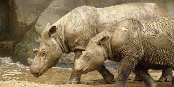 苏门答腊犀牛还身披厚厚的红棕色长毛﹐并且是世界上最后生存的披毛犀牛。
