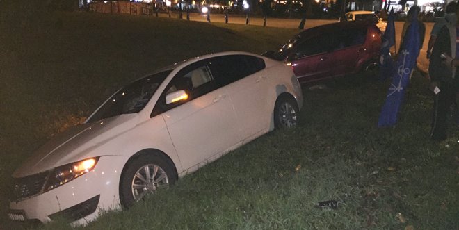 据普腾preve轿车的友族男司机事后表示﹐他当时驱车从晋汉大道方向前来抵达交通岛﹐过后在出路时与转交通岛而来的迈威轿车发生碰撞﹐随后轿车双双失控冲入交通岛内的草地﹐并斜卡在交通岛内的小沟上。