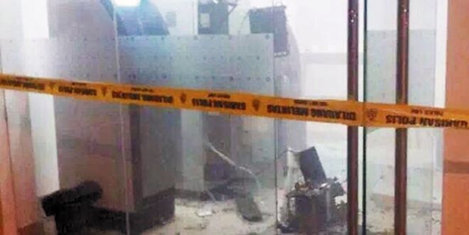 (保佛11日讯)3名劫匪今日凌晨闯入王麻骨国家储蓄银行,引爆土製水管炸弹炸开提款机,劫走了现钞7万余令吉。