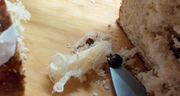 俄罗斯一名女子塔蒂亚娜(Tatiana Petovradzhi),日前到当地超市买了一个复活节蛋糕,准备切开享用时,竟在里头发现一个使用过的保险套,让人瞬间胃口全无。