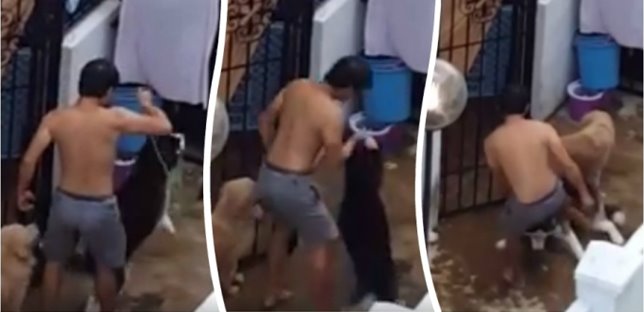 从视频可见,男子用力挥打哈士奇头部,而狗儿立刻挣扎,并试图逃脱。但男子却变本加厉,甚至拉起狗链以勒住狗儿的脖子,并让它在空中盘旋了几秒。男子随后还踹了狗儿一脚。狗儿似乎非常害怕,只默默地趴在地上。
