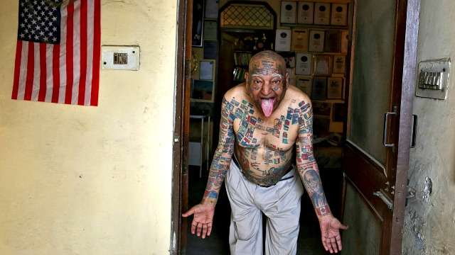 印度一名73岁老翁为了创下金氏世界纪录,不仅在身上刺满刺青,还为了在嘴中放满496根吸管和50多根蜡烛,特地拔光牙齿,至今已创下20多个金氏世界纪录。