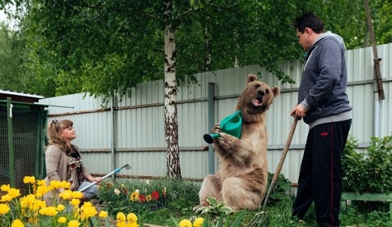 不少人都会被熊的庞大体型所嚇怕,很难联想到熊与人能够成为朋友。不过俄罗斯一对夫妇饲养了一只约300磅巨熊,並与牠一同生活23年,每天都会与牠一起熊同桌吃饭、偶尔会亲密「熊抱」,他们就如把巨熊当成自己小孩样照顾。