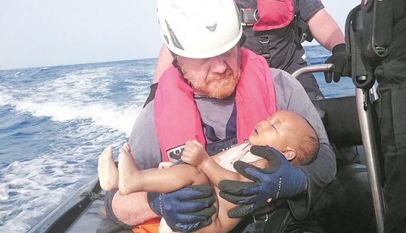 自称马丁的救援人员在电邮中说,他看到这个婴儿在海上漂浮,「就像个洋娃娃,双手张开」。他说:「我提著婴儿的前臂,把他很轻的身体拉起来,立即小心捧在怀里,就像他还活著似的。他的手臂伸得直直,小小手指指向天空,太阳照射在他明亮友善但动也不动的眼睛上。」