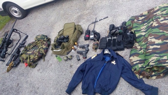 2位交警发现该名男性司机身穿海军制服,但是却又无法出示任何证明本身是海军的证件,再经过一番检查,发现车內载有大批军火装备,因此当场被交警逮捕,带往警局进行进一步调查。