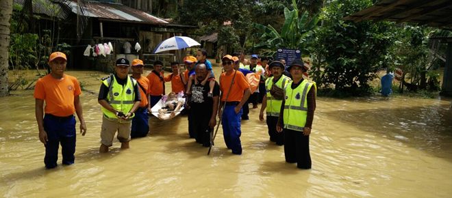 他表示,连日的大雨致使山河水位在数夜间高涨而爆发山洪,不过,灾民们的合作致使拯救工作队顺利进行拯救工作。
