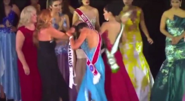 这段意外插曲发生在巴西亚马逊的选美大赛,当时裁判正准备加冕后冠,但亚军佳丽希也娜,因为不满比赛不公,质疑杜莉多的后冠是用钱买来的,因此暴怒失控狠扯后冠。