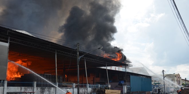 大火狂烧超过2小时,于下午约2时30分终被控制,于3时许火终于灭了 唯消防员仍驻守现场,在该间失火的板厂监看,以防火苗死灰复燃。