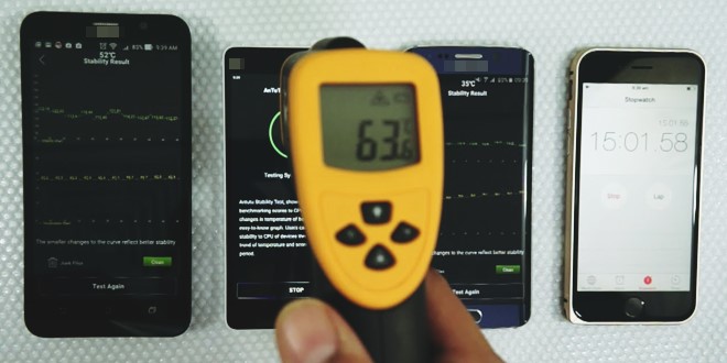 根据国际安全标准UL/IEC 62368-1的规定,手持式装置的表面温度仅可达到摄氏48℃,倘若过热就可能会有烫伤、电池损害..等安全疑虑。换言之, 智慧型手机使用时温度不能超过摄氏48℃, 否则就是过热,有安全问题. 不过, 根据网路网友测试, 使用高性能处理智慧型手机, 手机表面温度是有可能超过摄氏50℃以上的。