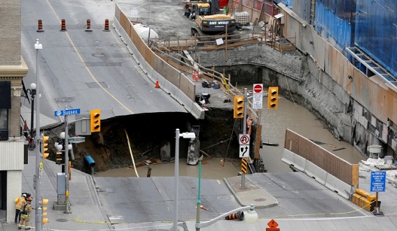 加拿大首都渥太华的国会大楼附近主要道路交匯处,於当地时间週三上午10时30分(大马时间週三晚10时30分)发生地陷,出现直径5公尺的坑洞,横跨4条行车道,一辆停泊在路边的厢式麵包车跌进坑洞中,幸未造成伤亡。